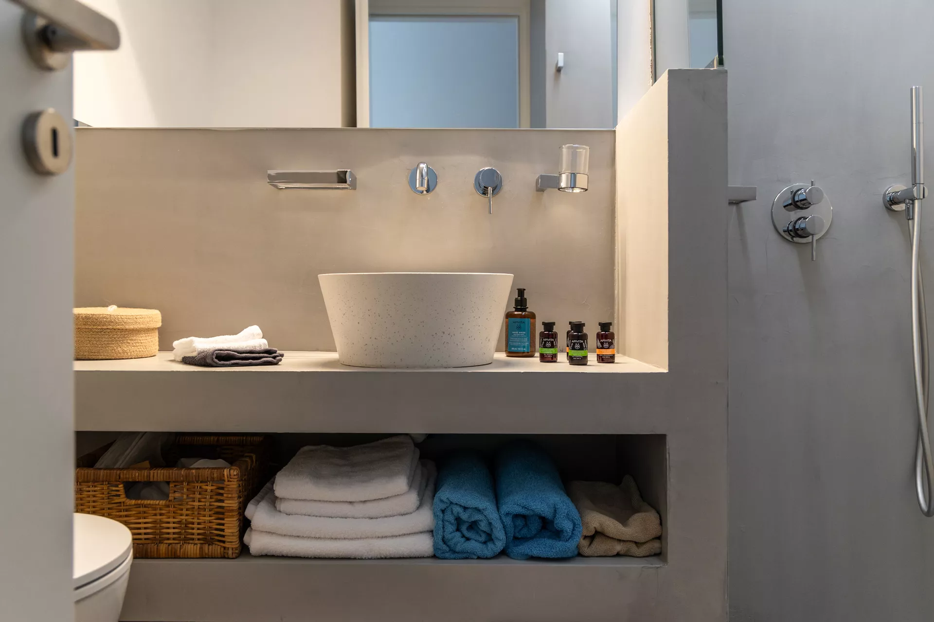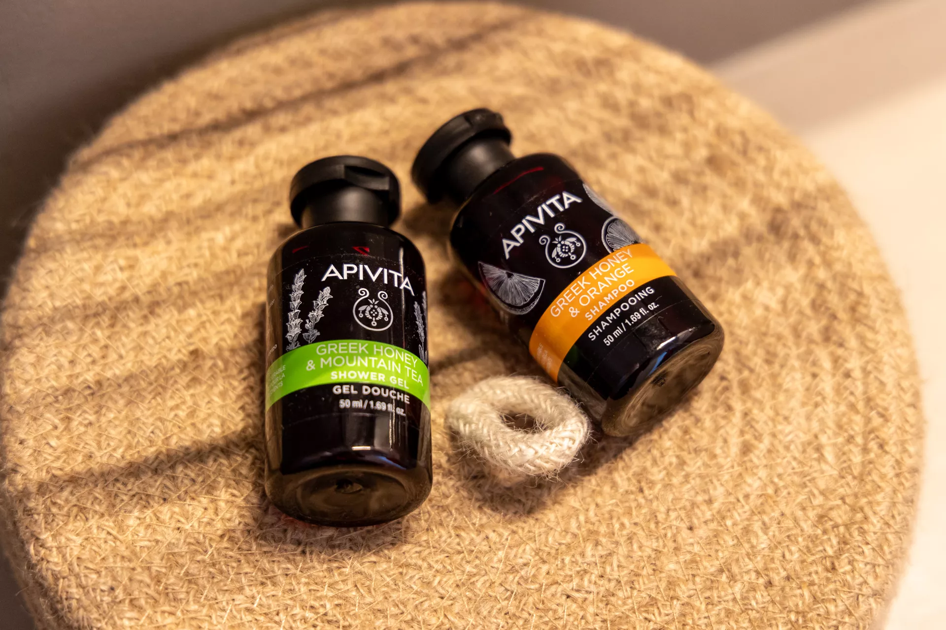 Équipée d’une douche, de produits d’hygiène (savon, shampoing), d’un sèche-cheveux, d’un peignoir et de chaussons.