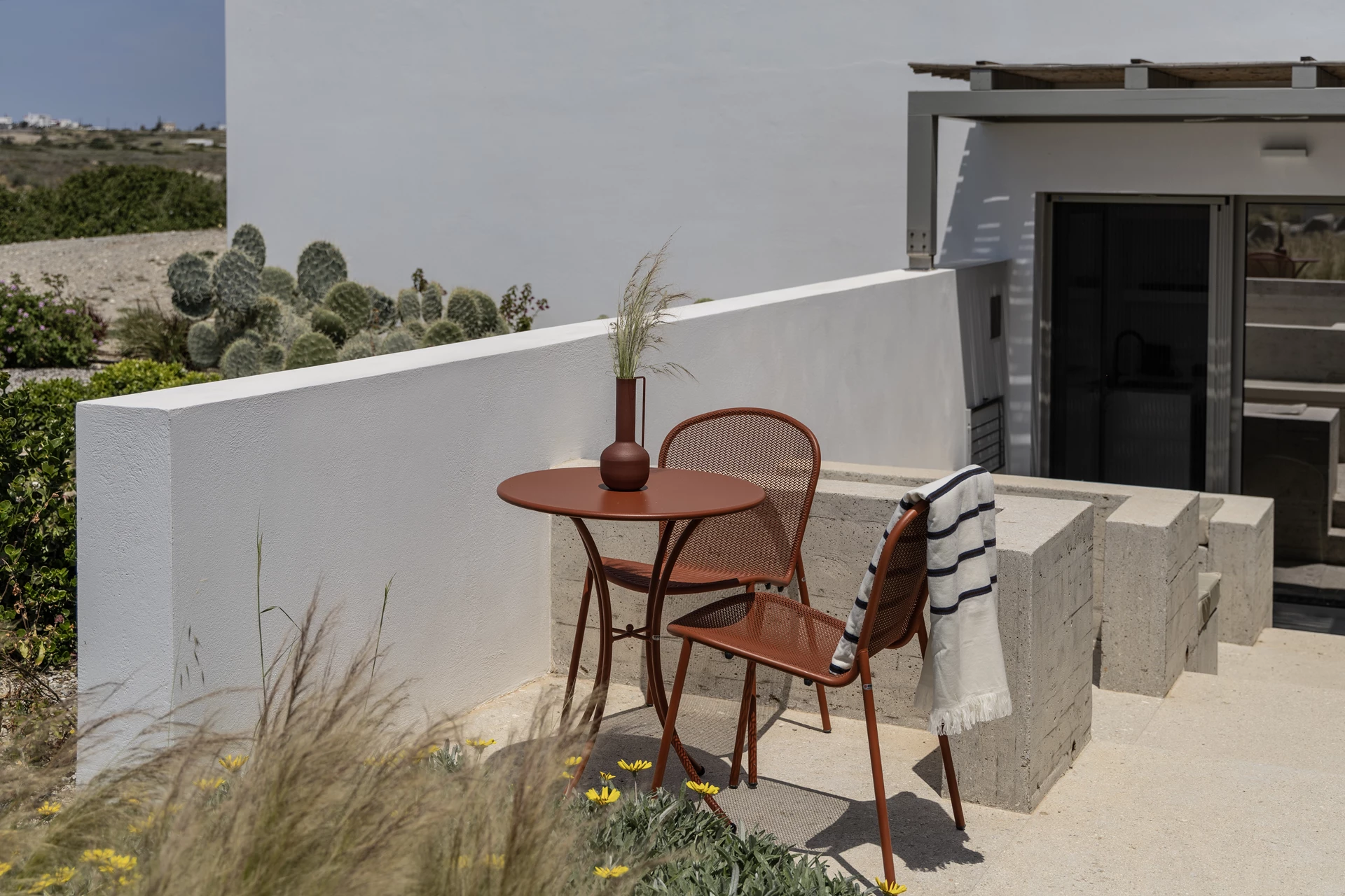 Uscendo dal Zeolite, troverai un'area dedicata con un tavolo con sedie, ideale per gustare pasti o bevande rilassanti mentre si assapora l'atmosfera circostante. Nota che, pur non essendo direttamente rivolto verso l'area comune, questo spazio esterno ti offre il perfetto equilibrio tra solitudine e accessibilità alle strutture del ritiro. Zeolite trova un equilibrio armonioso tra comfort interno e tempo libero all'aperto, rendendolo la scelta perfetta per un soggiorno privato e rilassato.