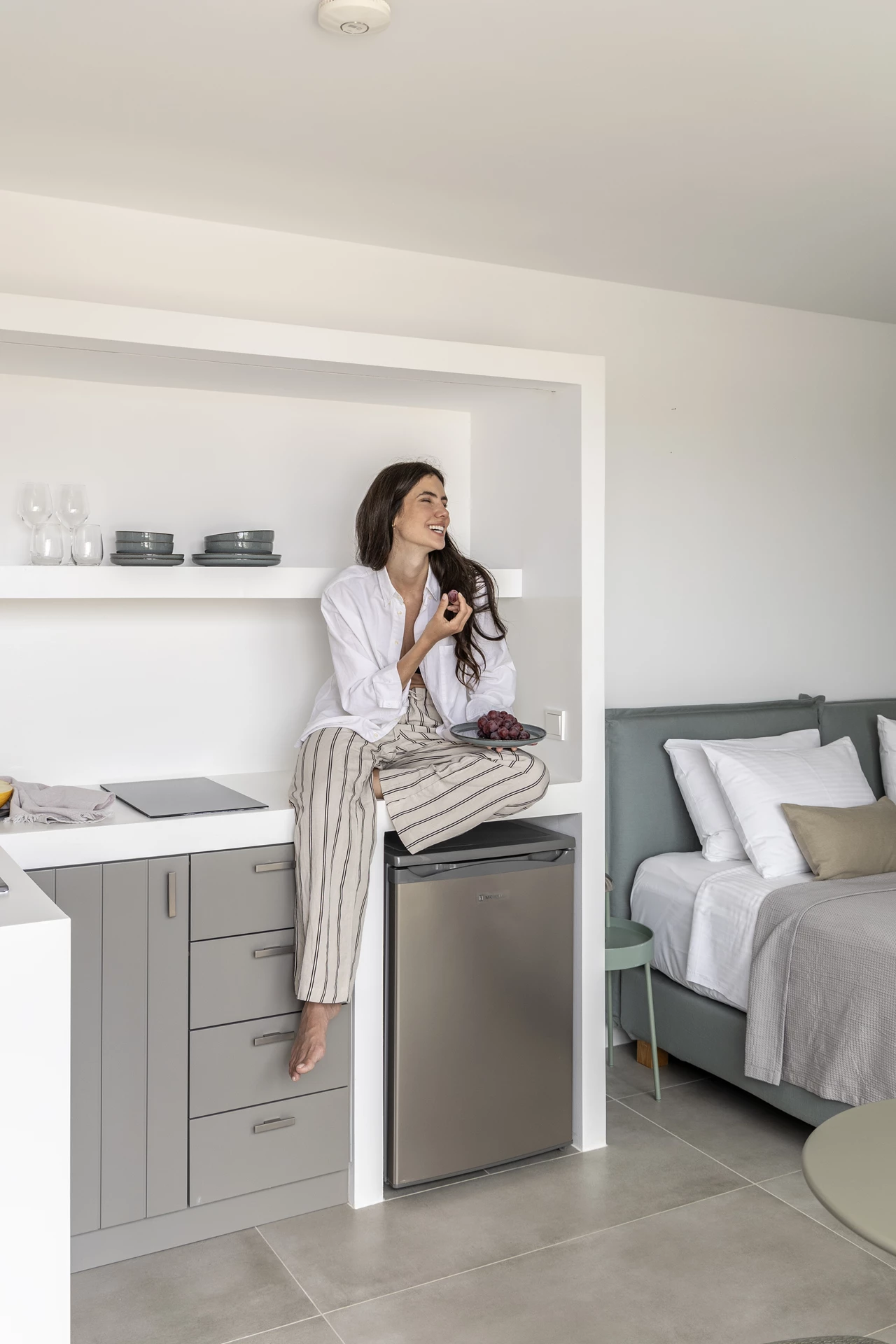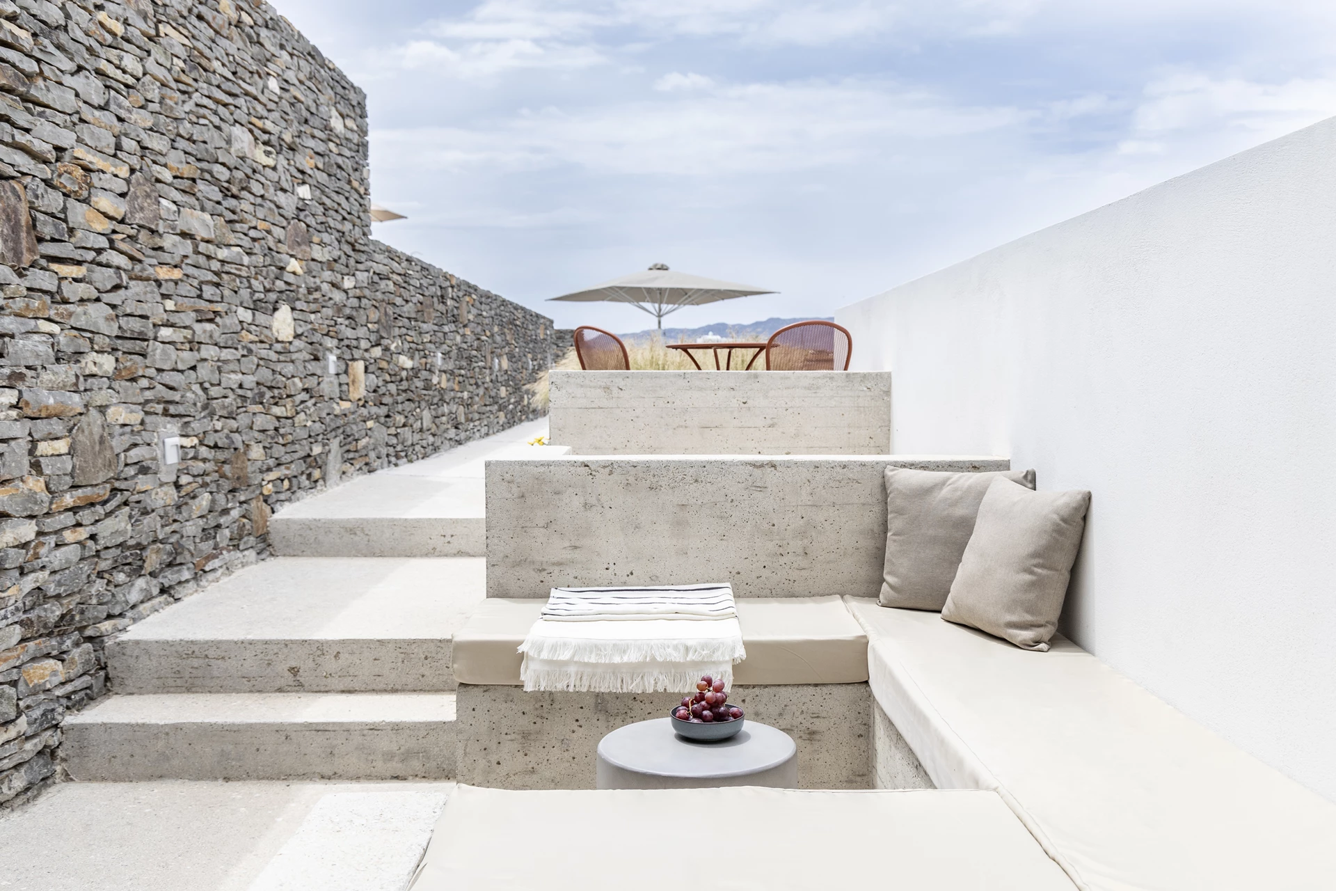 Goditi la serenità di Zeolite, una doppia suite in grotta di 31m². Goditi l'atmosfera rilassante della tua zona privata vicino alla piscina. Inizia la giornata con un caffè e concludela con una serata tranquilla, assaporando la tranquillità di Milos.