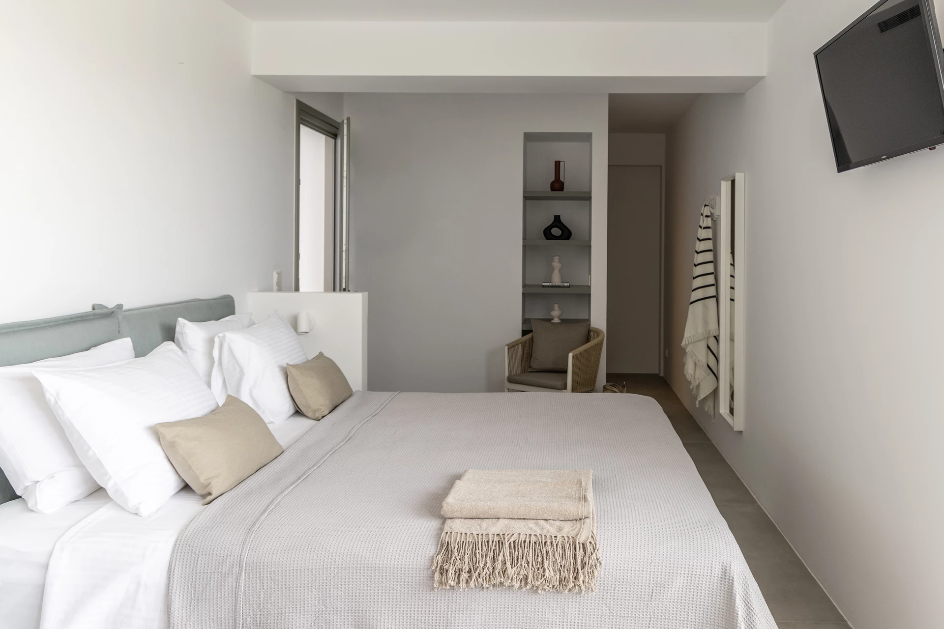Scopri Zeolite, un rifugio pacifico adornato di comfort e comodità. All'interno troverai un letto Queen-size rilassante e una poltrona accogliente accanto alla smart TV - l'angolo perfetto per rilassarsi o leggere nel pomeriggio.